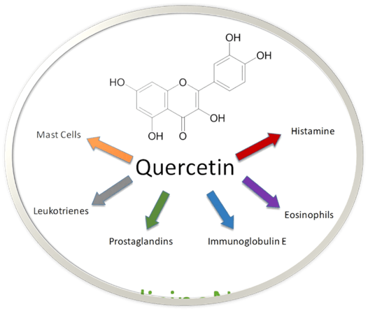 As before mentioned cytokine storms can lead to damaged alveoli which might lead to scar tissues (Fibrins) within the lung. This is also one of the longest lasting symptoms of post-COVID patients. Quercetin looks like a very promising flavonoid in preventing these fibrous tissues. Quercetin is particularly rich in broccoli, onion, and apple. As matter-of-fact Quercetin possesses anti-inflammatory, antioxidant, anti-carcinogenic activities. But there is an overwhelming number of clinical papers indicating its effectiveness in the management of allergies and allergic asthma. The main reason for this is that amongst all effects Quercetin has also anti-histaminic effects that favor a use in allergies.