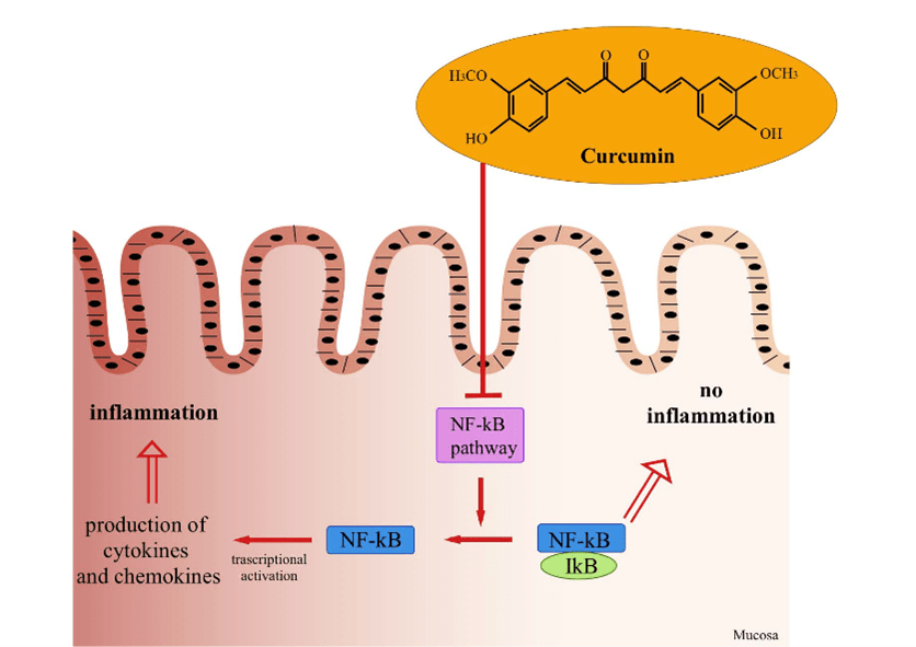 There are countless clinical trials proving the strong anti-inflammatory effect of curcumin. More recent data suggest a mode of action which addresses NF-kB (Nuclear Factor kappa B) as the main target. NF-kB is considered as the first trigger that starts the inflammation. An active compound that can lower this trigger without shooting a bullet is priceless. Once NF-kB is inhibited the cascade of Inflammatory Cytokines is inhibited as well.